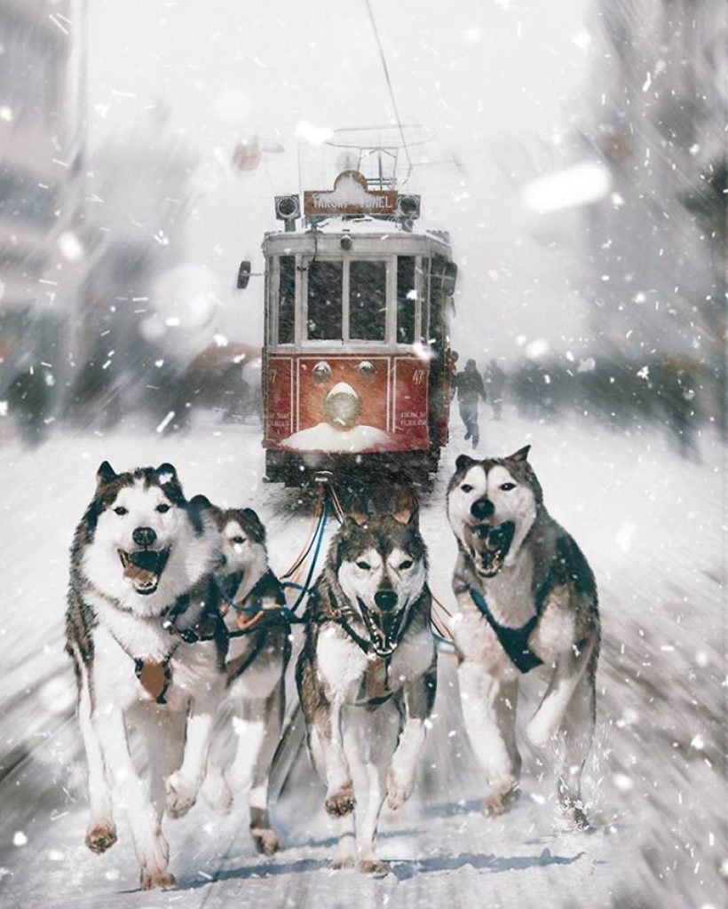 Hüseyin Şahin Isztambulban él és alkot. A munkái azért ennyire káprázatosak, mert egymástól gyökeresen ellentétes témákat használ fel minden képéhez, melyek így hihetetlenül álomszerűek. Mutatunk tőle egy bő merítést. Ha nem elég, kövesd Instagramon! Megéri.