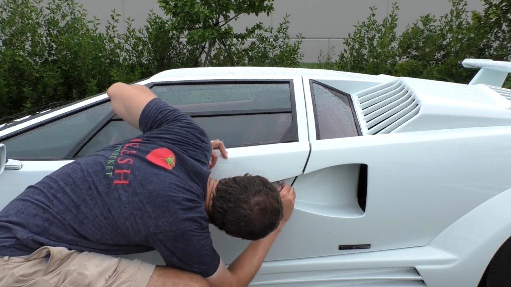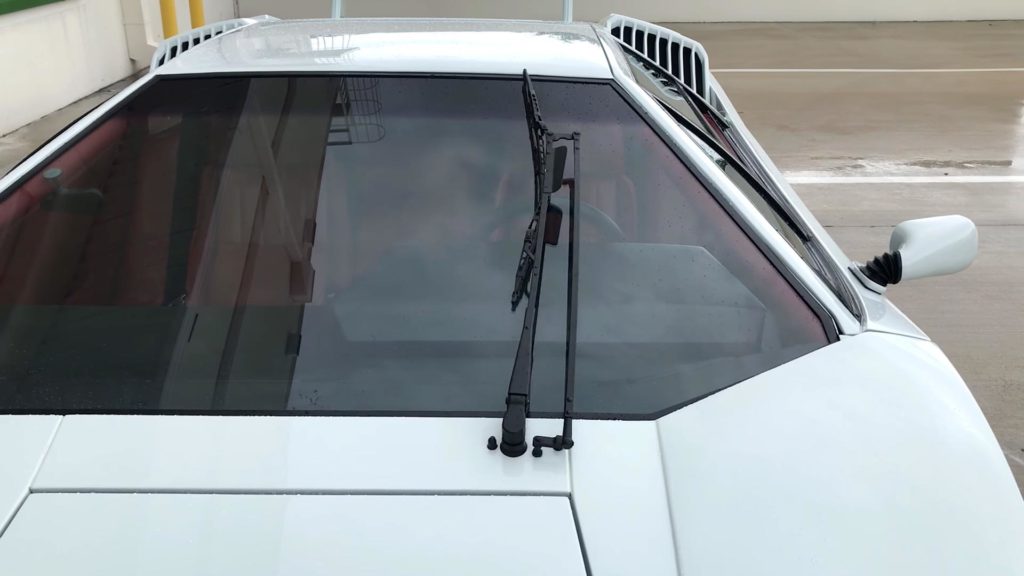 Egyetlen egy ablaktörlő karja van a Countach-nak, ami még nem lenne baj, az már inkább, hogy nem képes teljesen letörölni az üveget. A legrosszabb az egészben pedig az, hogy éppen a vezető előtt lévő részt hagyja ki.