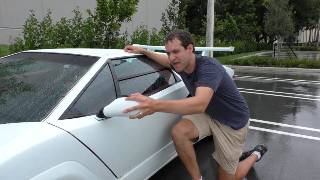 Hogy micsoda? Igen, ebben a Lambóban elektromos a zár, az ülés, az ablak és a tükör is, ennek ellenére a külső tükröt kézzel lehet behajtani. Bármilyen tetszőleges pozícióba, tehát gyakorlatilag kézzel is állíthatod magadnak, persze csak akkor, ha ki tudsz nyúlni az ablakon.