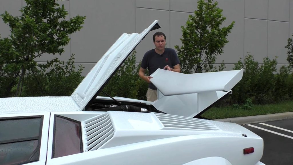 A Countach középmotoros, ezt mindenki tudja, és az ilyen autók többnyire elöl hordják a csomagtartójukat. De nem ez a Lamborghini, aminek az orrában a pótkereket és az akkut találod, a csomagteret pedig hátul. És meglepetésre egészen nagy!