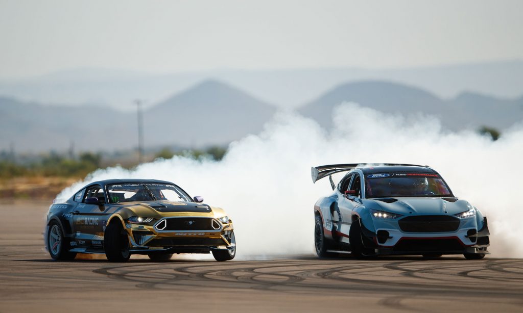 A volánjánál Vaughn Gittin Jr. profi drifter mutatta meg, mire képes a négy kagylóüléssel szerelt Mustang Mach-E RTR, amivel a következő NASCAR-futam közönségét is kápráztatják majd.