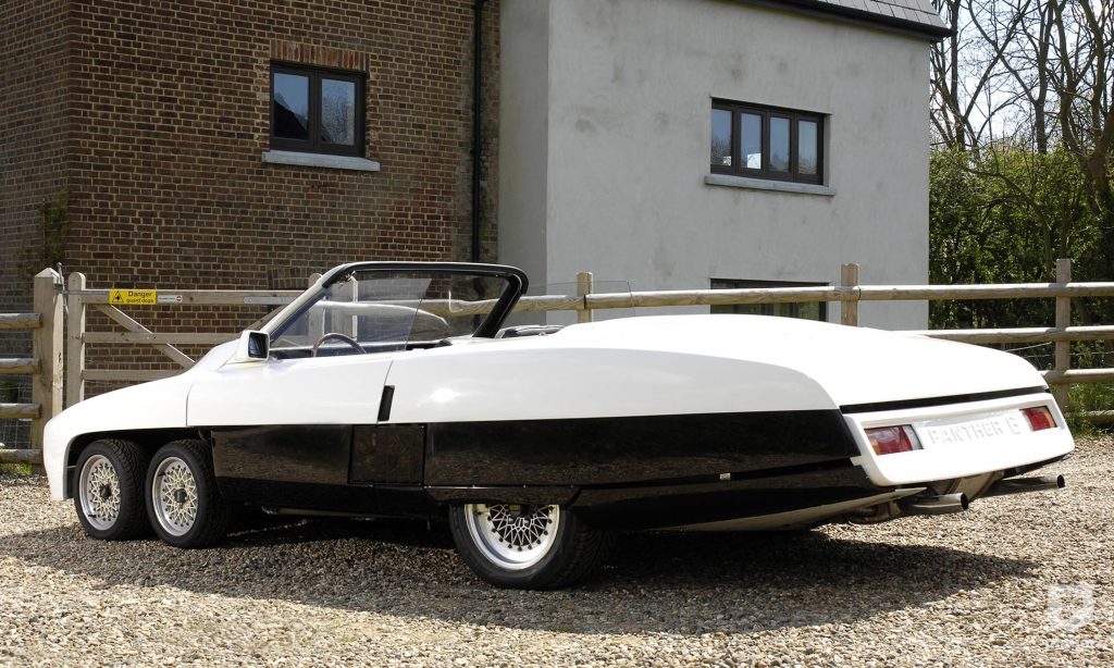 Az angliai Panther a hetvenes-nyolcvanas években gyártott klasszikus stílusú roadstereket, és a legőrültebb alkotásuk egyértelműen az 1977-ben bemutatott Six volt, aminek hatkerekű felépítését a Tyrrell Formula–1-es autója ihlette. A 16 colos hátsó kerekeket