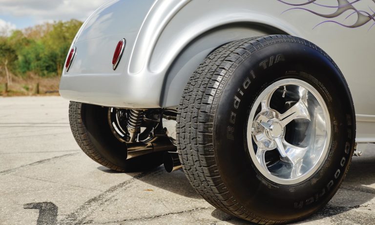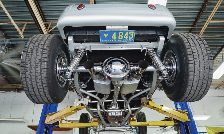 Chuck Lombardo kaliforniai műhelye alakította át a Fordot, és bár az alvázat megtartották, de legfeljebb a hűtőmaszk formájáról ismerheted fel az alapokat adó típust, hiszen a karosszéria már üvegszálas anyagból készült.
