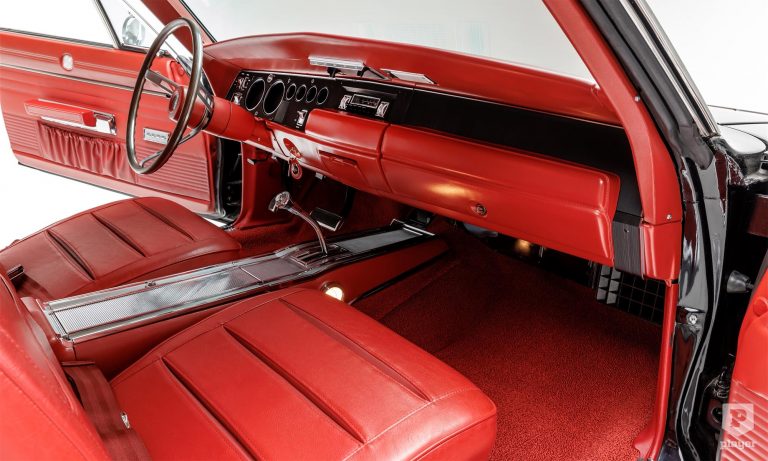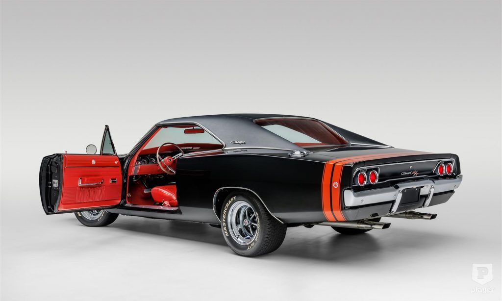 A képeket elnézve ez egy tökéletes állapotban lévő Dodge Charger, ami 1968-ban készült, ennek a szériának az első gyártási évében. A fekete fényezés, a piros bőrbelső és a 15 colos kerekek is mind fantasztikusan néznek ki, és mivel ez az R/T változat, ezért a 7,2 literes V8-as motor dorombolt benne 375 lóerővel. Eredetileg.