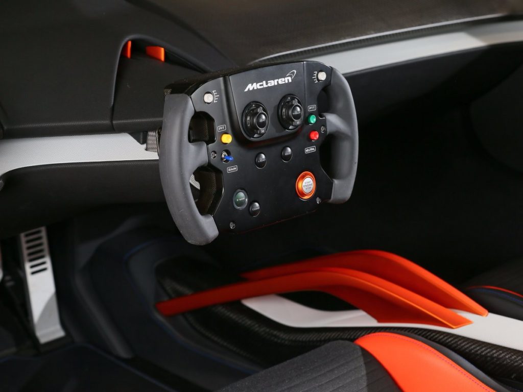 A belső tér sem hasonlít a sorozatgyártású kocsikéra. Ez sokkal inkább egy pilótafülke, 45 fokban dőlő ülésekkel, és olyan kormánnyal, amiről egy versenyautó kormánya jut eszünkbe.