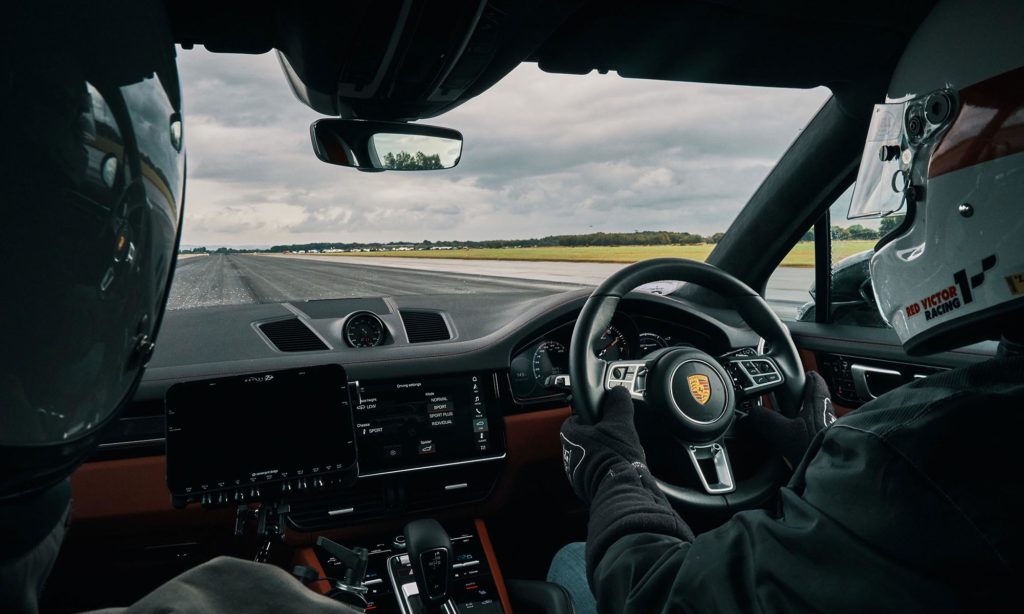 Persze ekkora sebességhez nem árt a szélárnyék, amit egy Cayenne Turbo adott meg neki.