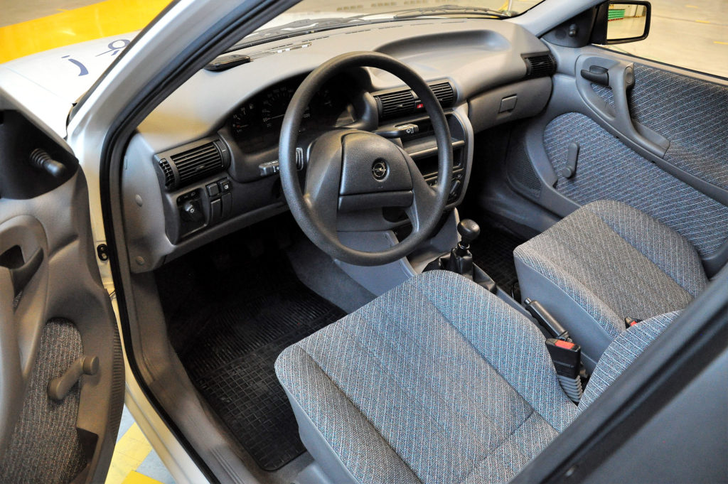 Makulátlan kárpitok és még mindig rücskös kormánykerék árulkodik arról, hogy ezt az Astrát nem kezdték el használni.