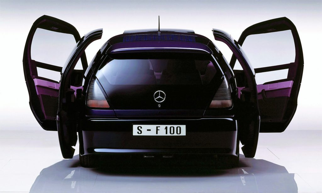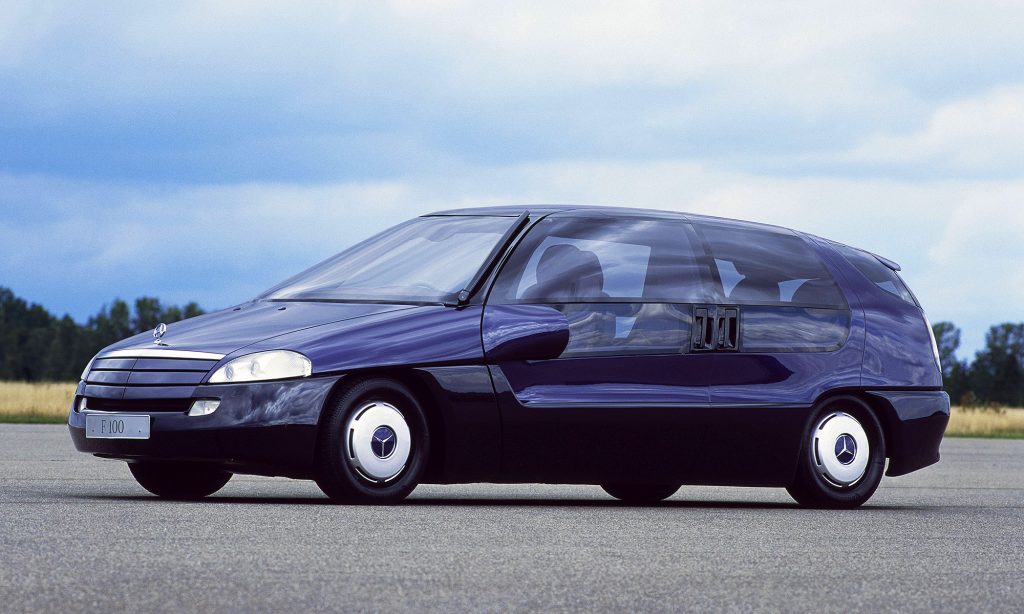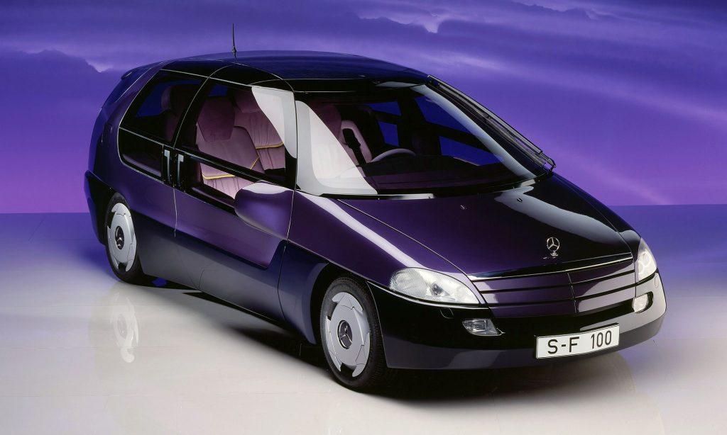 A Mercedesnél a jövőbemutató tanulmányautók sorát indította a harminc éve leleplezett, furcsa formájú F 100, benne számos olyan fejlesztéssel, ami mára valósággá vált a sorozatgyártású autókban.