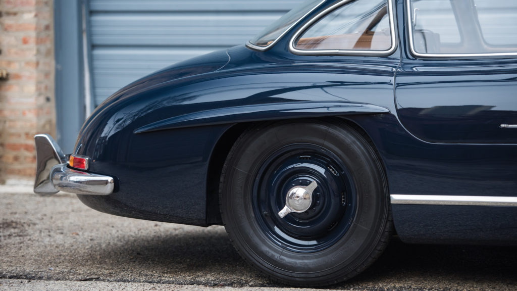 Kiváló állapotnak örvend, a sötétkék fényezés és a karamellszínű bőrbelső azt sugallja, hogy nehezen költhetnél el ennél stílusosabban 400 millió forintot. Körülbelül ennyit, mintegy 1,4 millió dollárt várnak ezért a sirályszárnyasért az RM Sotheby’s következő Amelia Island-i árverésén. Ezért az összegért pedig már a méretre szabott, szintén karamellszínű bőröndkészletet is megkapod hozzá.