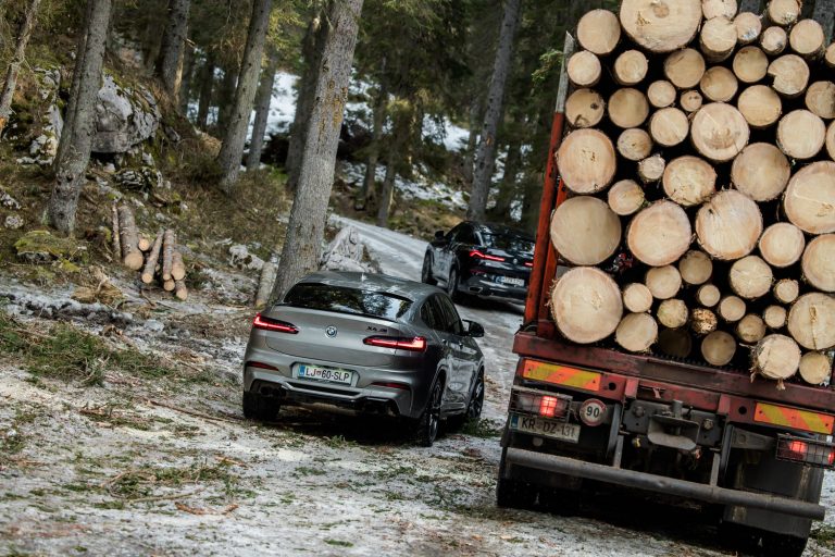 A havas erdei utakon ugrálva egyik BMW-ből a másikba felváltva élvezhettük az új, immár hathengeres benzinmotorral készülő plug-in hibrid X5 nyugodt erejét, stabilitását, komfortját, az X3 és X4 M Competition hatalmas, mégis könnyen kezelhető erejét (510 lóerő!), a kis X1, X2 átláthatóságát, tömörségét és így tovább. Az összes xDrive-hajtású BMW elszánt magabiztossággal teljesítette a túrát, olyan helyeken vágtunk át velük az élen autózó instruktor biztatására, amelyeknek eszünk ágába se lett volna nekifutni ezekkel a drága, szép, fényes kocsikkal, de a technika mindent megoldott hibátlanul.