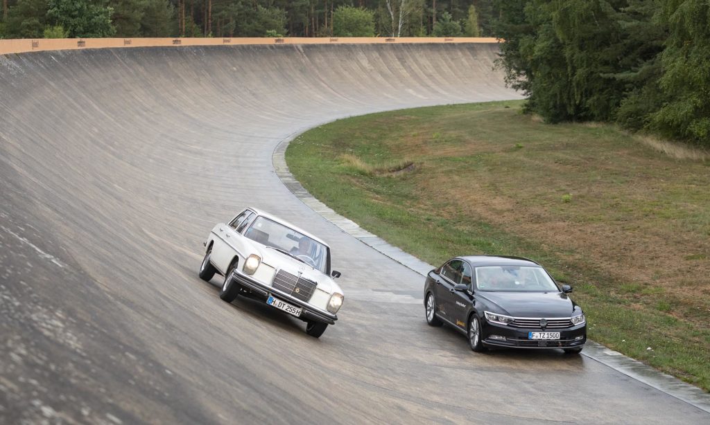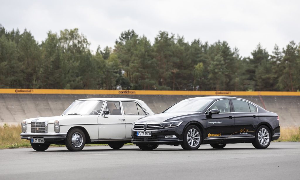 Most úgy tűnik, hogy az önvezető autók kora a küszöbön van, de már fél évszázaddal ezelőtt is arról számoltak be az újságok, hogy ez a jövő. A Continental nem is elsősorban kényelmi vagy biztonsági céllal kezdett a sofőr nélküli járművel foglalkozni, hanem azért, hogy programozott körülmények között tesztelhessenek gumiabroncsokat. 1968. szeptember 11-én aztán a szemlélők legnagyobb megdöbbenésére tényleg vezető nélkül kezdett körözni egy Mercedes a cég új tesztpályáján.