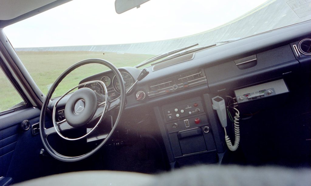 Az erre a célra kitalált állólámpás Mercedes több módosítás és több ezer tesztkör után végül 1974-ig szolgált a cégnél,