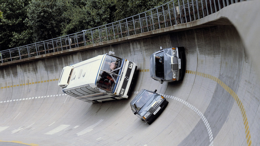 Fél évszázada nyúzza autóit gyári tesztpályáján a Mercedes-Benz. Az 1967-ben megnyitott komplexumban mindenféle járművet alapos próbának vethetnek alá, a legérdekesebb a döntött pálya, ahol elengedett kormánnyal is lehet száguldani.