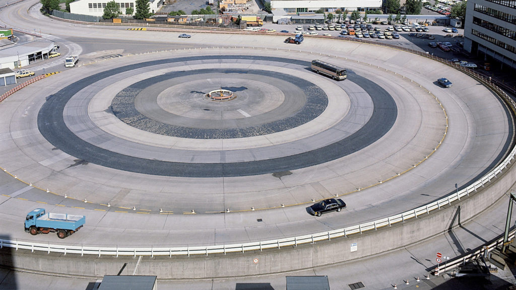 Már 1953-ban felvetődött egy tesztpálya ötlete a Mercedes-Benznél, a tervek közül elsőként a körpálya nyitott meg 1957-ben. Itt többféle burkolaton, aszfalton, betonon, kockakövön lehetett vizsgálni a járművek kanyarodási tulajdonságait, a beépített locsolórendszernek köszönhetően vizes pályán is.
