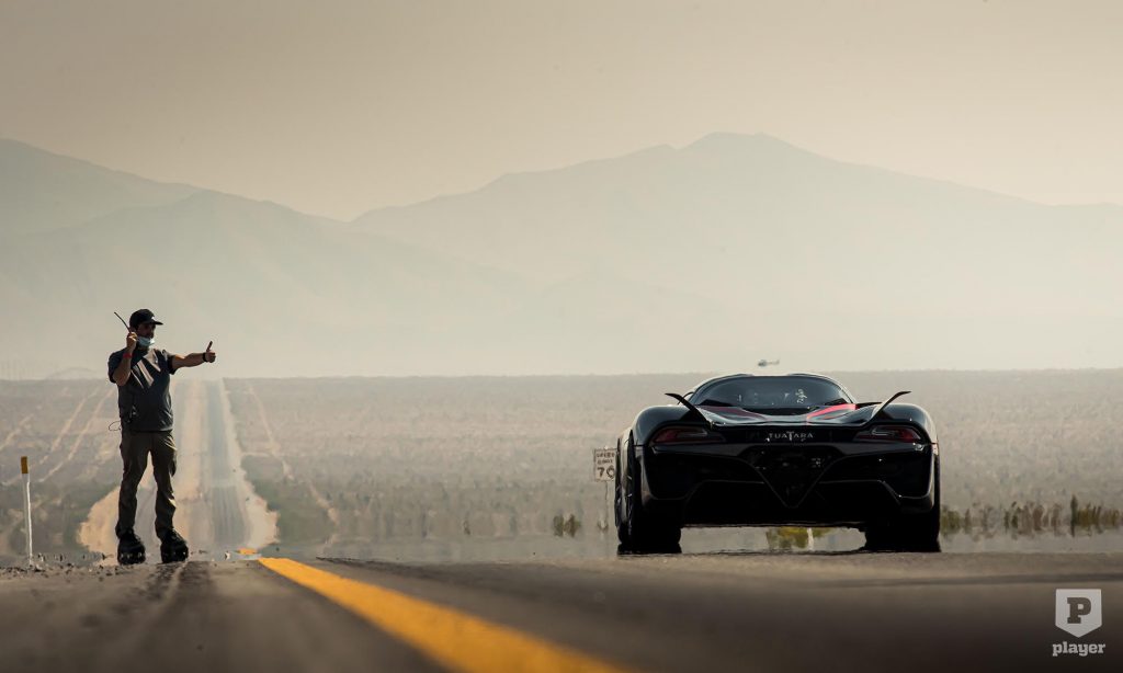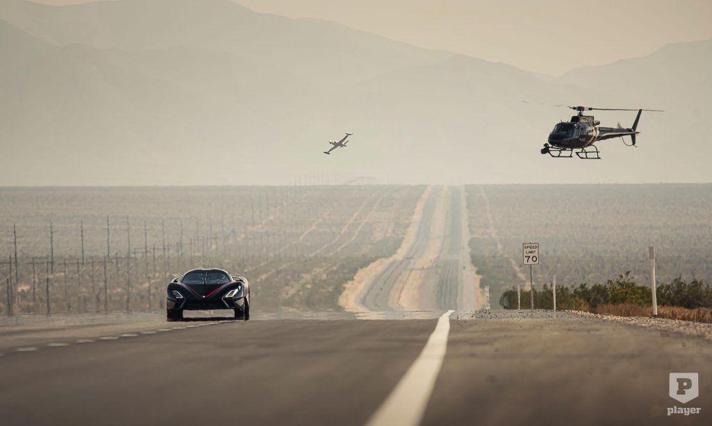 A sebességet 15 műholdhoz kapcsolódó GPS-szel mérték, de ennél is izgalmasabb volt, hogyan vették filmre az 500 felett száguldó szuperautót. A helikopter és a drón mellett