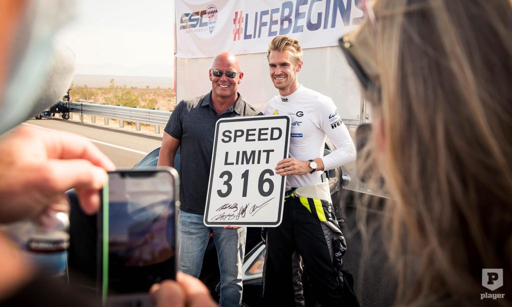 de az oldalszél miatt nem fokozta tovább a tempót. Az első mérésen 484,53 km/órát ért el, ami a rekordhoz elég lett volna, de a Bugattit még nem múlta felül, a másik irányban azonban 532,93 km/órát ment, ami végül kiadta az új Guinness-csúcs átlagát.