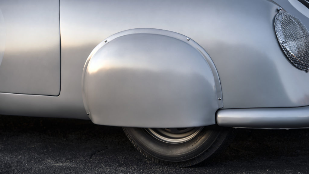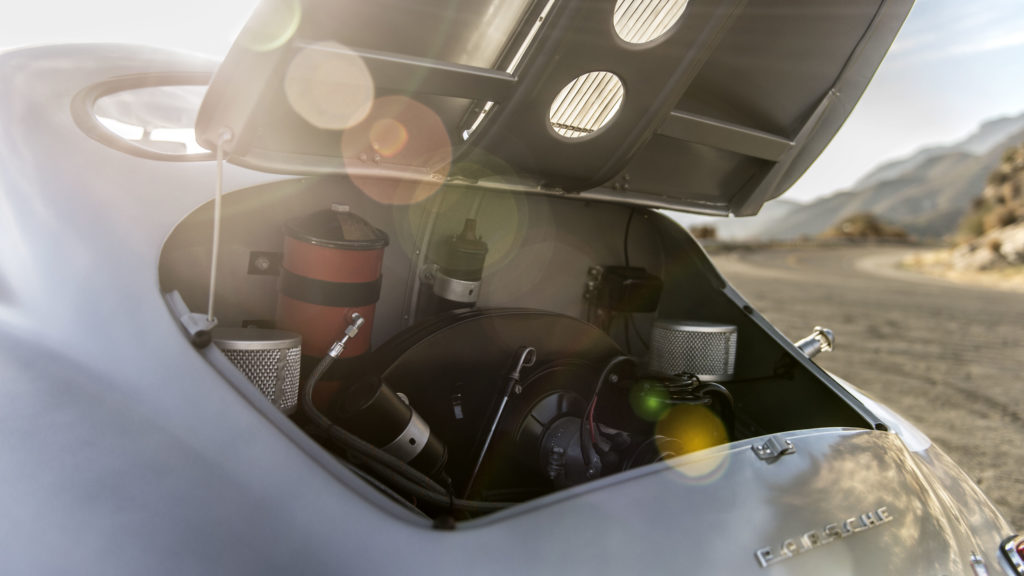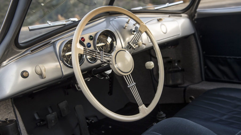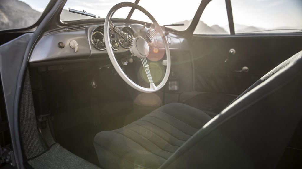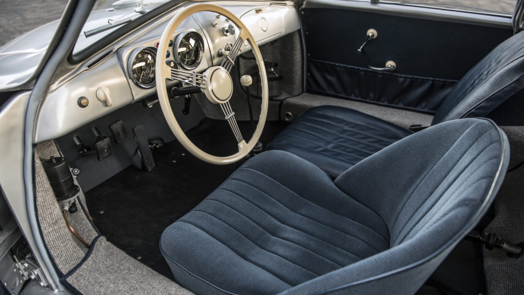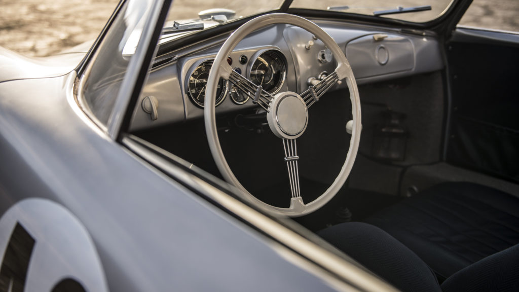 A mintegy ötven darab alumínium 356 Gmünd Coupéból négyet választottak ki versenyautónak. Két prototípus épült a teszteléshez, a másik kettőt pedig benevezték az 1951-es Le Mans-i viadalra. Sajnos ezek közül az egyik már az edzésen összetört, úgyhogy jól gondolod, a képeken látható autó a másik, ezért elképesztő értéket képvisel. Főleg azután, hogy első szereplésén meg is nyerte az 1,1 literes motorral szerelt autók kategóriáját, és az összetettben 19-edik lett.