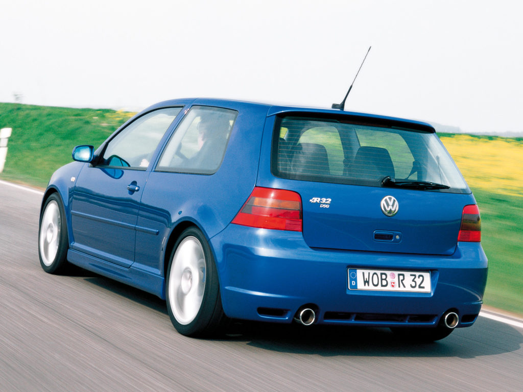 A négyes Golf kínálatának igazi gyöngyszeme volt az R32, amibe az Audi TT-ből származó 3,2 literes, 241 lóerős V6-os motort szereltek, hozzá pedig a világ első duplakuplungos automatizált váltója (DSG) kapcsolódott. 2002-ben mutatták be az összkerékhajtású R32-t, ami 6,6 másodperc alatt gyorsult százra és akár 247 km/órával is száguldhatott, miközben nagyvonalakban úgy nézett ki, mint bármelyik másik Golf.