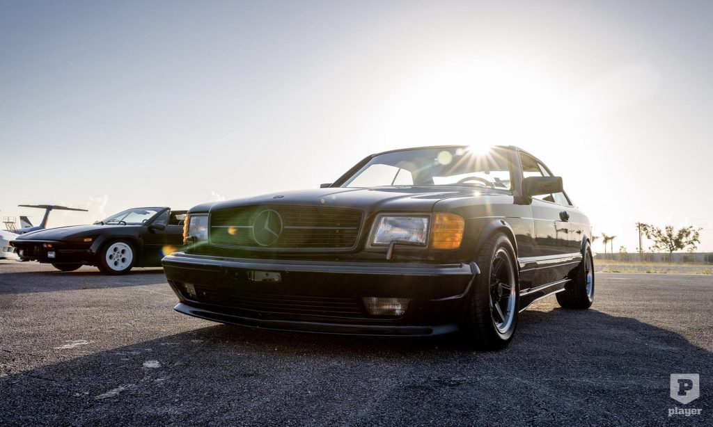Nem is tudjuk eldönteni, mi a menőbb, a '89-es fekete Lamborghini Countach, a 25. évfordulós kiadásban, alig több mint négyezer kilométerrel, vagy a Mercedes-Benz SEC 6.0 AMG, a fényezéshez illő ötágú kerekekkel. Ott van még a képen