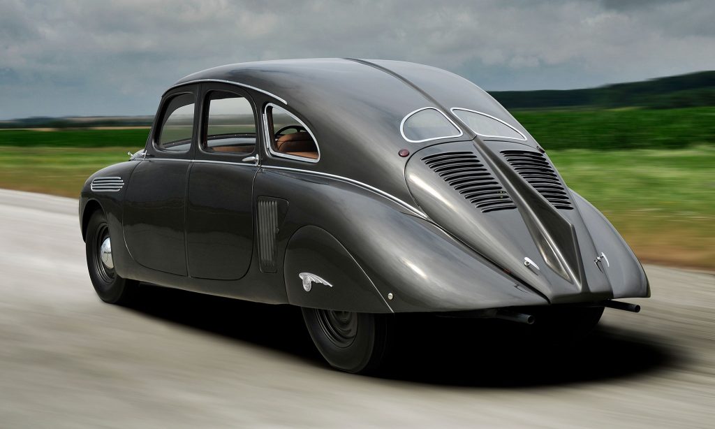 A harmincas években egyre nagyobb teret kapott az autótervezésben az aerodinamika, és 1935-ben a prágai autószalonon a Škoda is bemutatta a saját prototípusát, amit az áramlástan tudományának legújabb eredményei alapján építettek meg. A szokatlan formájú karosszéria légellenállási együtthatója 0,37 volt, ami kiemelkedőnek számított akkoriban.