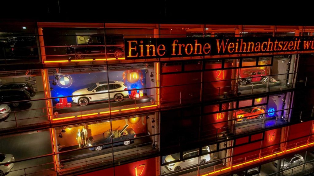 A két márka idén karácsonykor is összefogott: nemes gesztusként az elektromos BMW iX3 egy példányát állították a müncheni Mercedes-kereskedés kirakatába, amit hatalmas adventi naptárként immár csaknem két évtizede minden évben karácsonyi fényekbe borítanak.