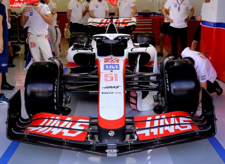 A Haas a mezőnyből elsőként mutatta meg a 2022-es szezonra szánt autóját – pontosabban csak annak festését –, ami akkor a névadó szponzora, az Uralkali orosz vegyipari vállalat révén még orosz színekben tündökölt. Nem sokkal később azonban Oroszország megszállta Ukrajnát, az amerikai istálló erre reagálva előbb elhagyta oroszos festését (ideiglenesen hófehérre váltott), majd azonnali hatállyal felbontotta szerződését az Uralkalival, valamint orosz pilótájával, Nyikita Mazepinnel.