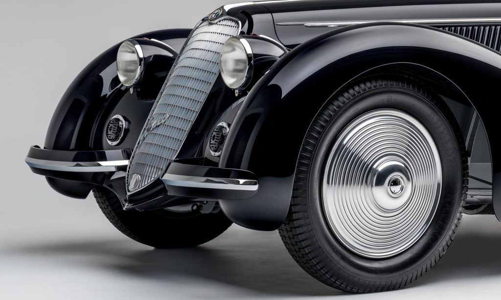 amiből 1937-ben csupán tíz példányt építettek, a legtöbbre a Carrozzeria Touring műhelyében álmodtak karosszériát. A képeken látható modell a hosszabb, háromméteres tengelytávú Lungo változat, elképesztő méretű, 19 colos kerekekkel.