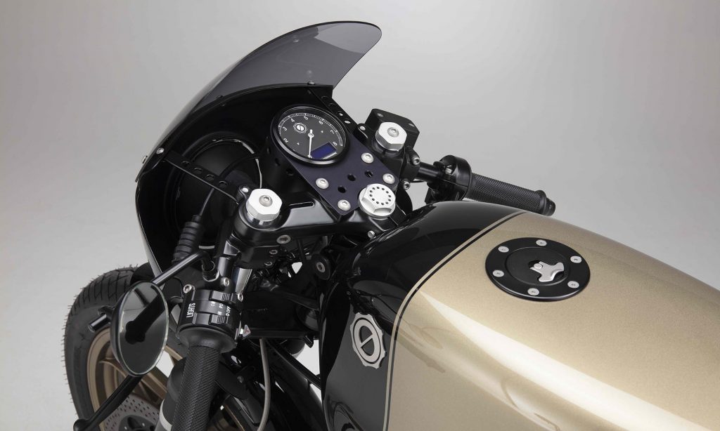 A minimalista stílusban felújított motoron a matt és polírozott felületek váltogatják egymást,