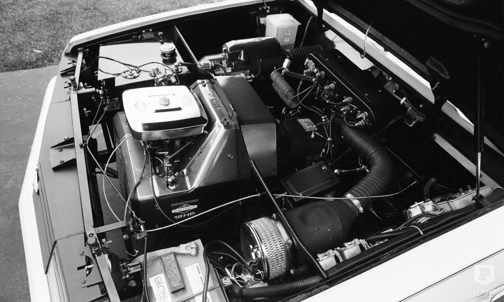 egyébként teljesen egyedi karosszériát kapott a prototípus. Az orrába a Briggs & Stratton jól bevált hétszáz köbcentis, 18 lóerős, léghűtéses, kéthengeres motorja került, amihez egy 8 lóerős elektromotor kapcsolódott. A két motor akár együtt, akár külön is tudta hajtani a járművet.