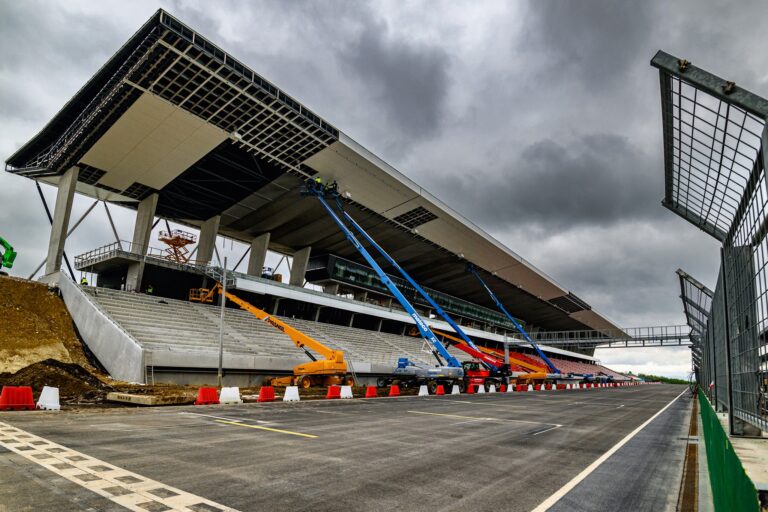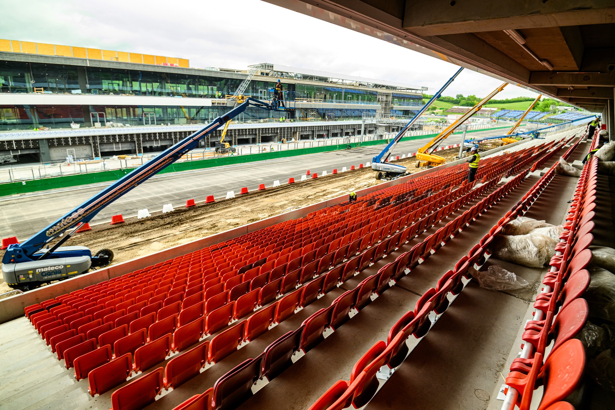 A munkálatok gőzerővel zajlanak, jelenleg is naponta mintegy 1200 ember dolgozik a helyszínen azon, hogy minden időben elkészüljön. A célegyenes már most versenyre kész – végre eltűnt róla a hosszú ideig ott éktelenkedő védőborítás –, a bokszutcákat gyakorlatilag akár már most birtokba vehetnék a csapatok, és a főlelátó is lassan olyan állapotba kerül, hogy újra szurkolókkal telhessen meg.