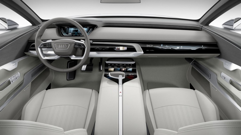 Még izgalmasabb dolgok fogadnak minket az utastérben, amelybe bepillantva úgy érezhetjük magunkat, mintha egy olyan sci-fibe csöppentünk volna, amelyben az érintésérzékeny felületek az egész világot elfoglalták. A Prologue műszerfalát ajtótól ajtóig gyakorlatilag teljes egészében ellepték az érintésérzékeny felületek és az érintőkijelzők, igazi gombokat csupán a kormányon találunk néhányat mutatóba. Ha az Audi szerint ilyen a jövő, akkor tárt karokkal várjuk.