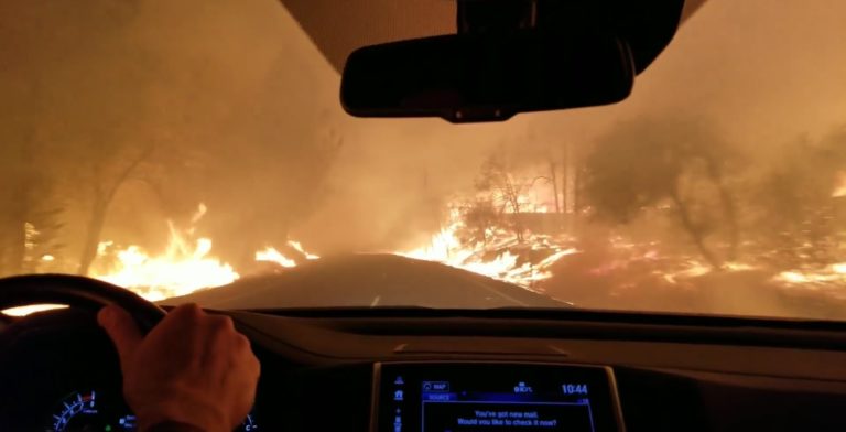 Mutattuk már a hatalmas területen tomboló kaliforniai tűzvész kapcsán, hogy milyen hajmeresztő dolog autóval menekülni a lángoló erdőből.