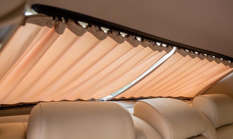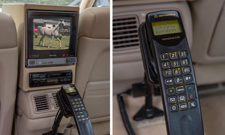 A süppedős szőnyeggel borított, és teljesen elfüggönyözhető hátsó térben autótelefon és színes tévé mutatja, hol tartott a technika a kilencvenes évek végén, a hátul is szabályozható klíma és fűthető ülés már gyárilag benne volt.