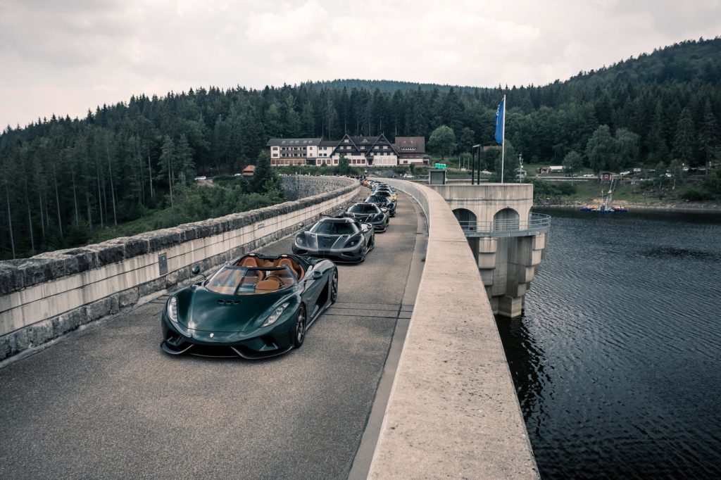 A környék tökéletes volt ahhoz is, hogy a tulajdonosok kipróbálják sportkocsijukat a Fekete-erdő kanyargós útjain. A túra során, amelyen 16 autó vett részt, felkeresték az 1926-ban elkészült, 400 méter hosszú és 65 méter magas Schwarzenbach gátat is, és elég csak megnézni a képeket, hogy belásd, tökéletes fotóhelyszín volt a Koenigsegg flottájának.