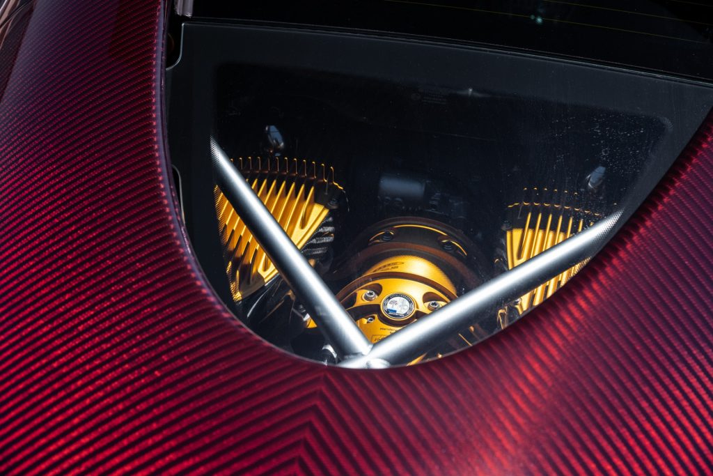 A különlegessége, hogy a karosszériáját, ami teljes egészében szénszálas anyagból készült, anyagában színezték vörösre, ezért a lakkozás alatt látható maradt a karbon szerkezete. A külsőhöz illik a vörös és fekete színnel kárpitozott belső tér.