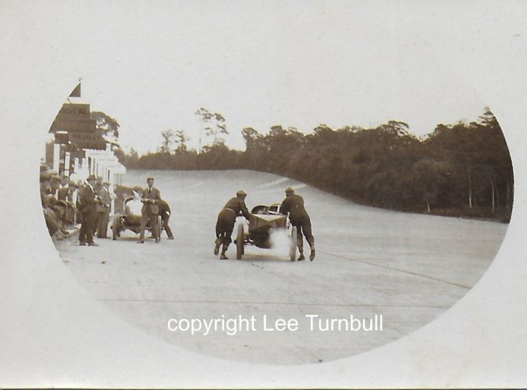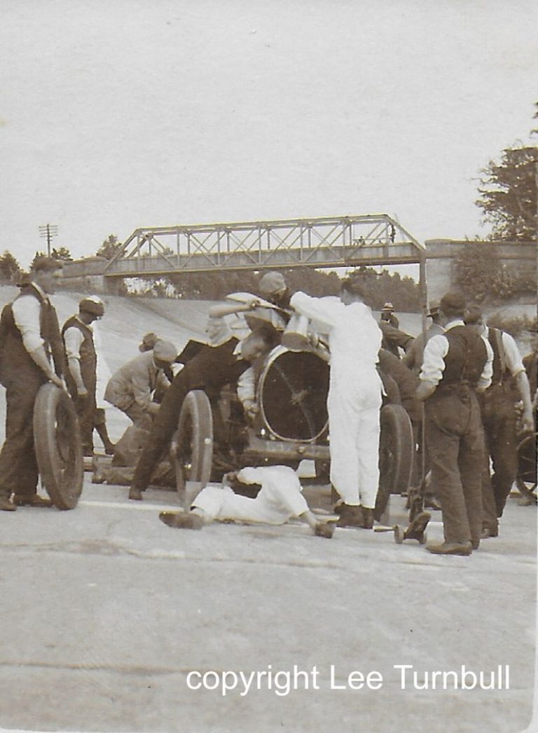 A képeken – amelyek önmagukban eszmei és sportágtörténeti értéket képviselnek – látható (brooklandsi) pálya érdekessége, hogy ez volt a világon az első épített autóverseny-pálya.