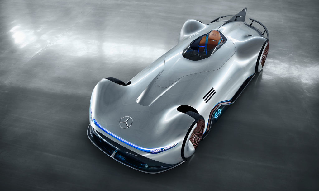 Most ennek a legendának az emlékét eleveníti fel a Mercedes-Benz egy újabb Ezüstnyíllal, ám az EQ Silver Arrow már inkább a jövő versenyautóját vetíti elénk. Az 5,3 méter hosszú és alig egy méter magas, együléses gép ennek megfelelően már tisztán elektromos hajtású. A teljesítménye 750 lóerő, és bár azt nem tudjuk, milyen gyors, a 80 kilowattórás akkumulátor egy feltöltésével 400 kilométert lehetne megtenni vele.