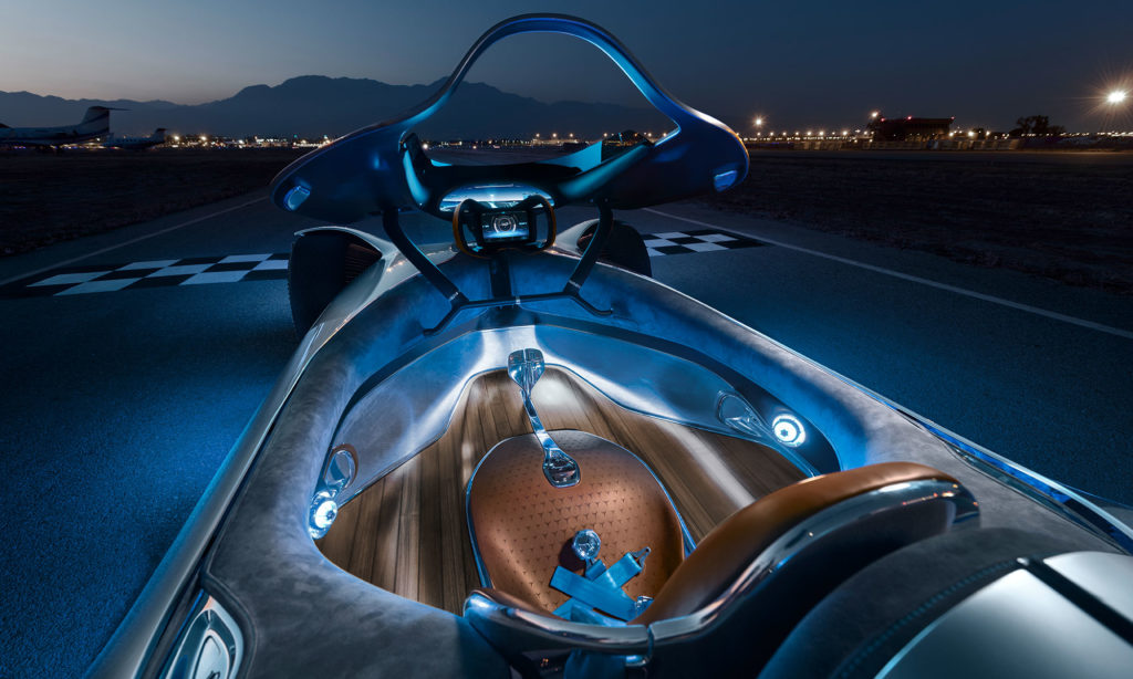 A formája mindenesetre elég lenyűgöző, akár a 168 küllős, rózsaarany színűre fényezett, elöl 24, hátul 26 colos, félig burkolt kerekeket nézzük, akár a diófából készült padlóval borított, nyakfűtéssel ellátott bőrüléssel szerelt pilótafülkét. A versenyautós kormánykerékre színes képernyős műszeregység került, és felette is van egy kijelző, ami úgy segíti a vezetőt, hogy tanácsokat ad az ideális ívek megtalálásához.