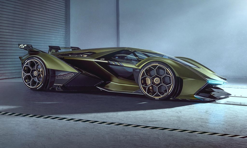 Nem lennénk meglepve, ha a Lamborghini egy valódi prototípust épített volna meg, de a képeken látható szuperautó egyelőre csak virtuálisan létezik. A V12 Vision Gran Turismo az együléses versenyautókhoz hasonlít, azok mintájára a kerekek a karosszériától külön kaptak helyet, a tetejét a vadászgépek pilótafülkéje ihlette.