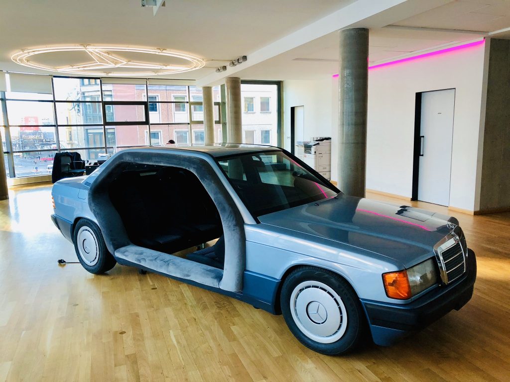A Mercedesnek dolgozik az a berlini reklámügynökség, ahol stílusos tárgyalót építettek egy leselejtezett Baby Benz karosszériájából.