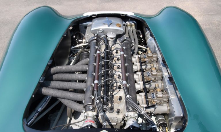 1956-ban építette a DBR1-eket az Aston Martin, az öt példány közül ez az 1-es számú. A szabályok szerint kezdetben 2,5 literes hathengeressel szerelték, ami 215 lóerős volt, de később már 3 literes soros hathengeres került bele 240 lóerővel.