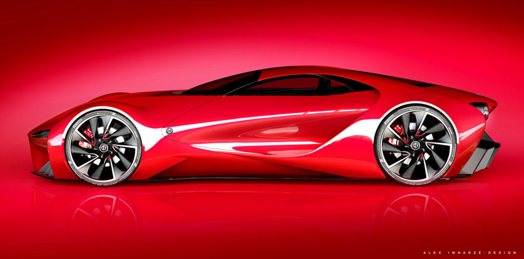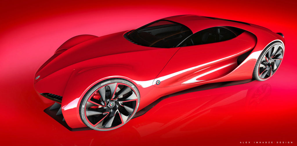 Most éppen a 4C az Alfa Romeo sportautója, az 1,75 literes, turbós motorral szerelt, kompakt és könnyű modell, ami szintúgy kapható zárt és nyitott tetős változatban is. De a rajongók bizonyára örömmel vennének egy izmosabb Alfa Romeo sportkocsit, amit egy ügyes dizájner, Alex Imnadze álmodott meg. A képeket elnézve csak sajnálhatjuk, hogy nem az Alfa Romeótól származnak a tervek.