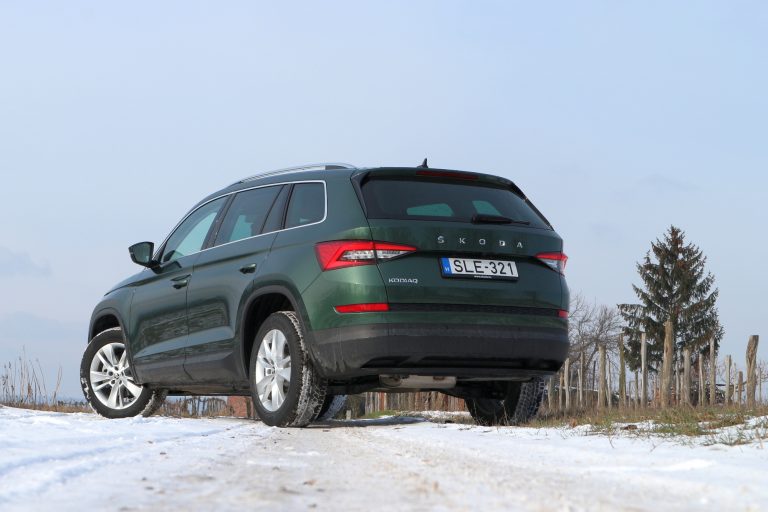 A kétliteres, 150 lóerős dízelmotor és a hétfokozatú DSG még a legfrissebb Euro-szabvány teljesítése mellett is nyugodtan, határozottan, erőteljesen vitte a nagy testet. A 2,8 méteres tengelytávon kényelmesen hintázott a 17 mázsás bódé de a stabilitással, a kiszámítható ívtartással sem volt probléma. Az összkerékhajtás hiánya, a fronthajtás butasága igazából a mindennapokban egyáltalán nem fájt. A Kodiaq ugyan kívülről SUV, ami műfajilag kívánná a 4x4-et, de belülről már kisbusz, nagy családi utazóautó, amiben igazán meg lehet lenni komoly terepjáróképesség nélkül is. (Ha valaki nem akar vontatni vagy ténylegesen sarat dagasztani.)