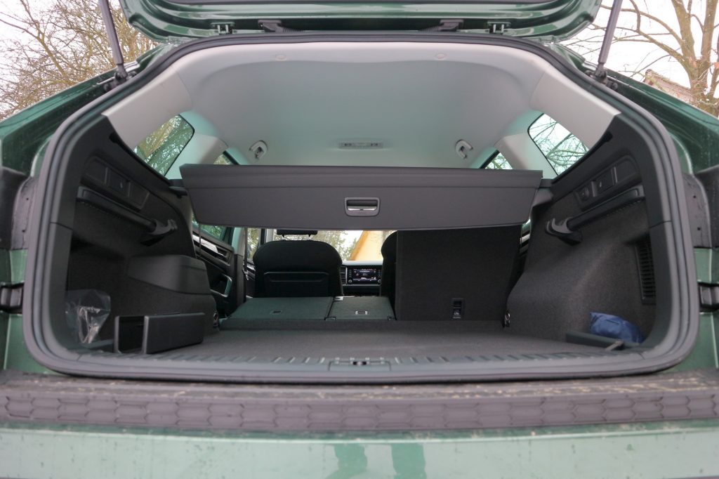 A Kodiaq hét üléssel is kapható, de ha nincs benne harmadik üléssor, akkor látványos igazán odabent a tér bősége. 835 literes a csomagtartó, miközben a hátsó lábtér akkora, hogy az itt ülők lábához még befekhet egy nagyobb kutya is szunyókálni. (Egy ötüléses X5-ös BMW-ben pótkerék nélkül maximum 650 liter a raktér.) Lehajtogatott hátsó ülésekkel több mint két köbméteres furgon lesz az ötüléses Kodiaqból. (Az X5-ben 1870 liter a maximális raktér.)