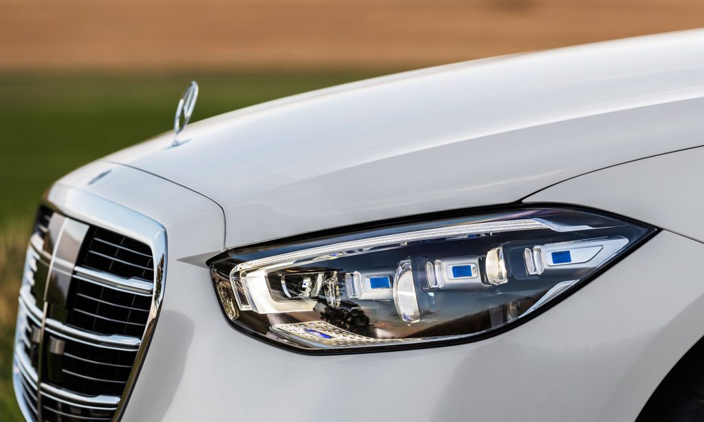 A fényszórókban oldalanként 1,3 millió apró tükörrel szórják a fényt, amivel az S-osztály akár jelzéseket is képes vetíteni az útra.
