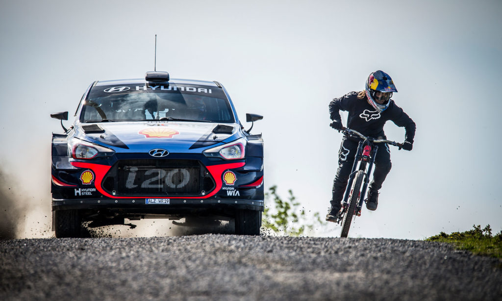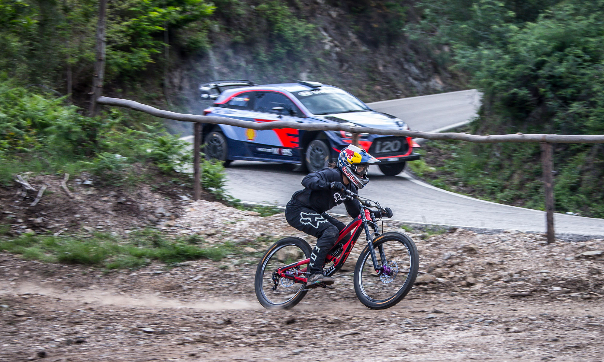 Látványos versenyt eszelt ki a Red Bull, bár az ötlet nem új, de a résztvevők igen: Andreu Lacondeguy mountain bike-kal, Dani Sordo pedig több mint háromszáz lóerős raliautóval vágott neki, hogy kiderüljön, melyikük ér le hamarabb a hegyről.