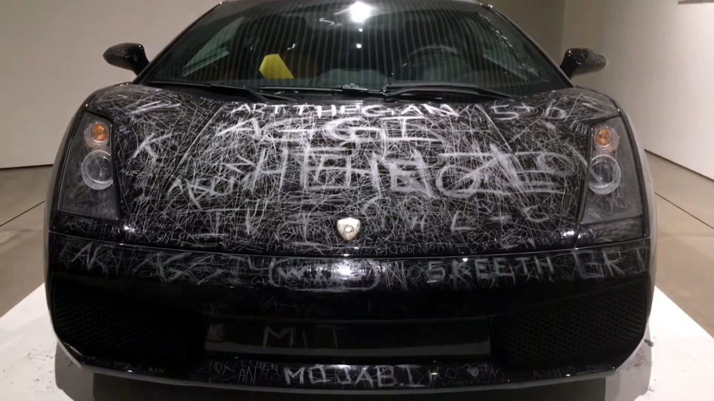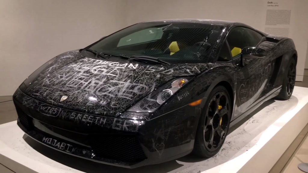 Bárki megkarcolhatta ezt a Lamborghinit, aki ellátogatott az aarhusi művészeti múzeumba Dániában. Még a múlt év szeptemberében állították ki ezt a fényes fekete Gallardót, és arra kérték a látogatókat, hogy véssék bele, ami csak eszükbe jut.