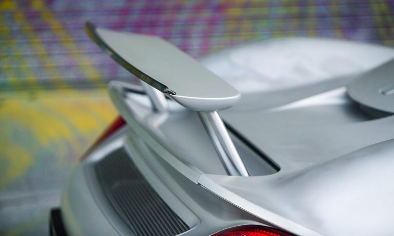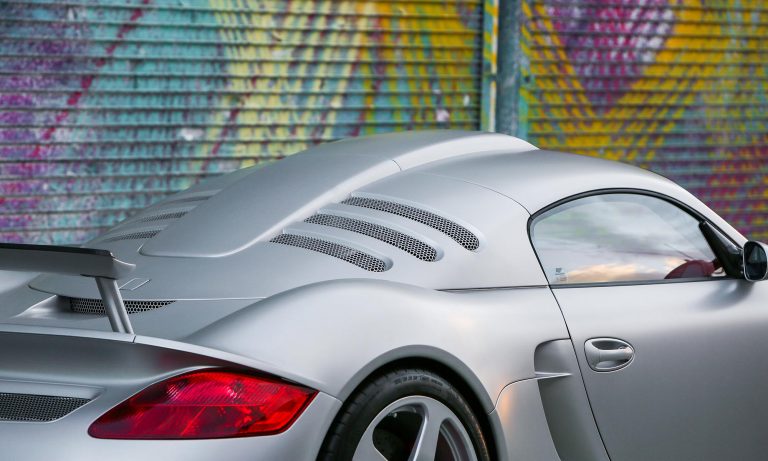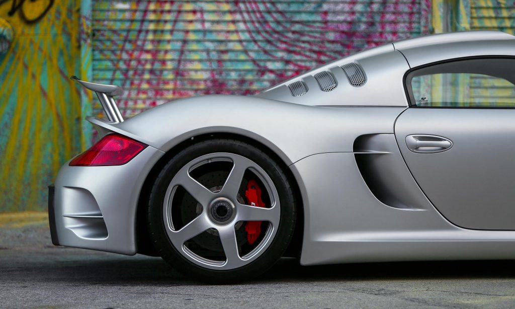 A 4,45 méter hosszú sportkocsi kevlár-karbon karosszériája hosszabb, szélesebb és laposabb a korabeli Porschéknél, és nem hátra, hanem középre került a 3,7 literes, hathengeres bokszermotor.