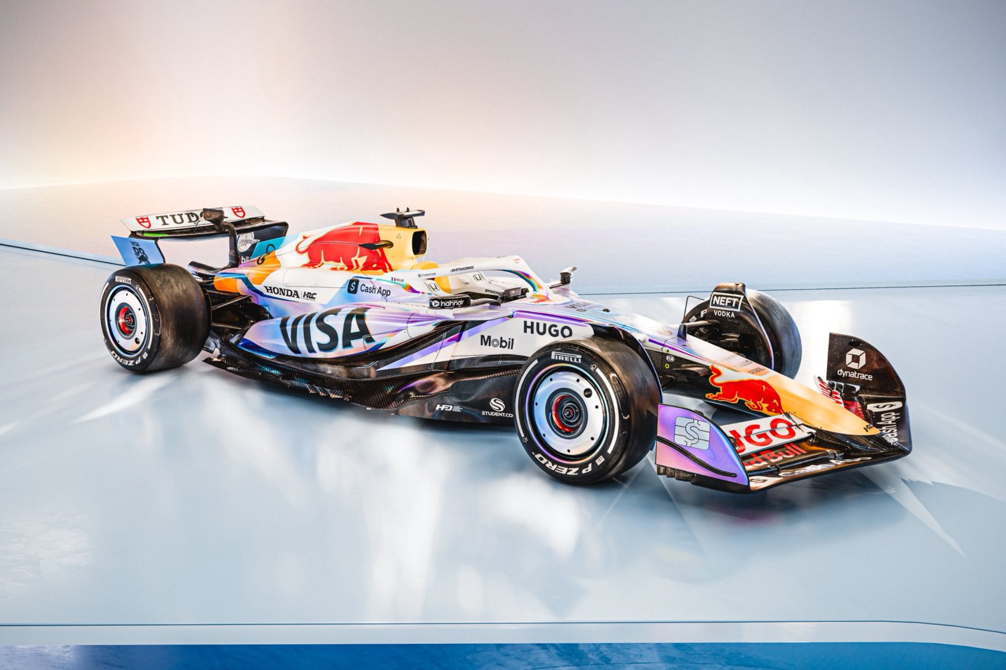 Több istálló is különleges fényezéssel készül a hétvégi Las Vegas-i Nagydíjra, mindközül azonban Racing Bulls dizájna tűnik ki a leginkább, ugyanis az autója színváltós lett, pontosabban minden részlete holografikus. A merőben kirívó megjelenést, az istálló egyik főszponzora, a Visa legújabb prémium kártyája, a Holo Card és persze maga Las Vegas neonfényes fényáradata inspirálta: