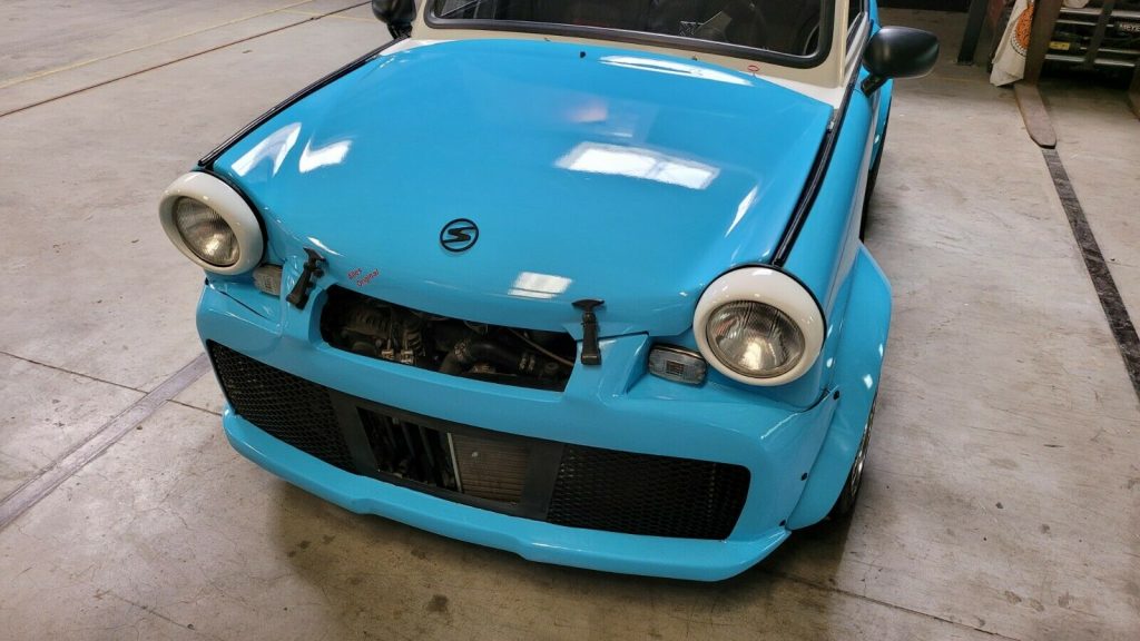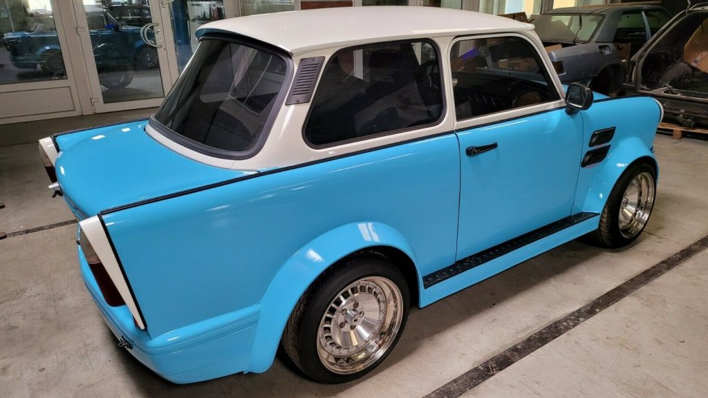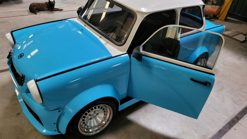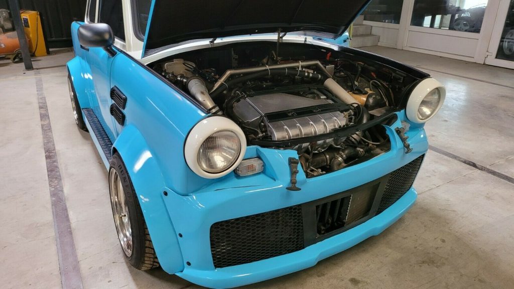 Csak a karosszériáját tartotta meg az eredetiből ez a Trabant, de még azt is alaposan átalakították, hogy elférjenek alatta a szélesebb nyomtávú kerekek, és bele tudják préselni a Volkswagen VR6-os motorját, amit egy Mercedesből származó kompresszorral szereltek.